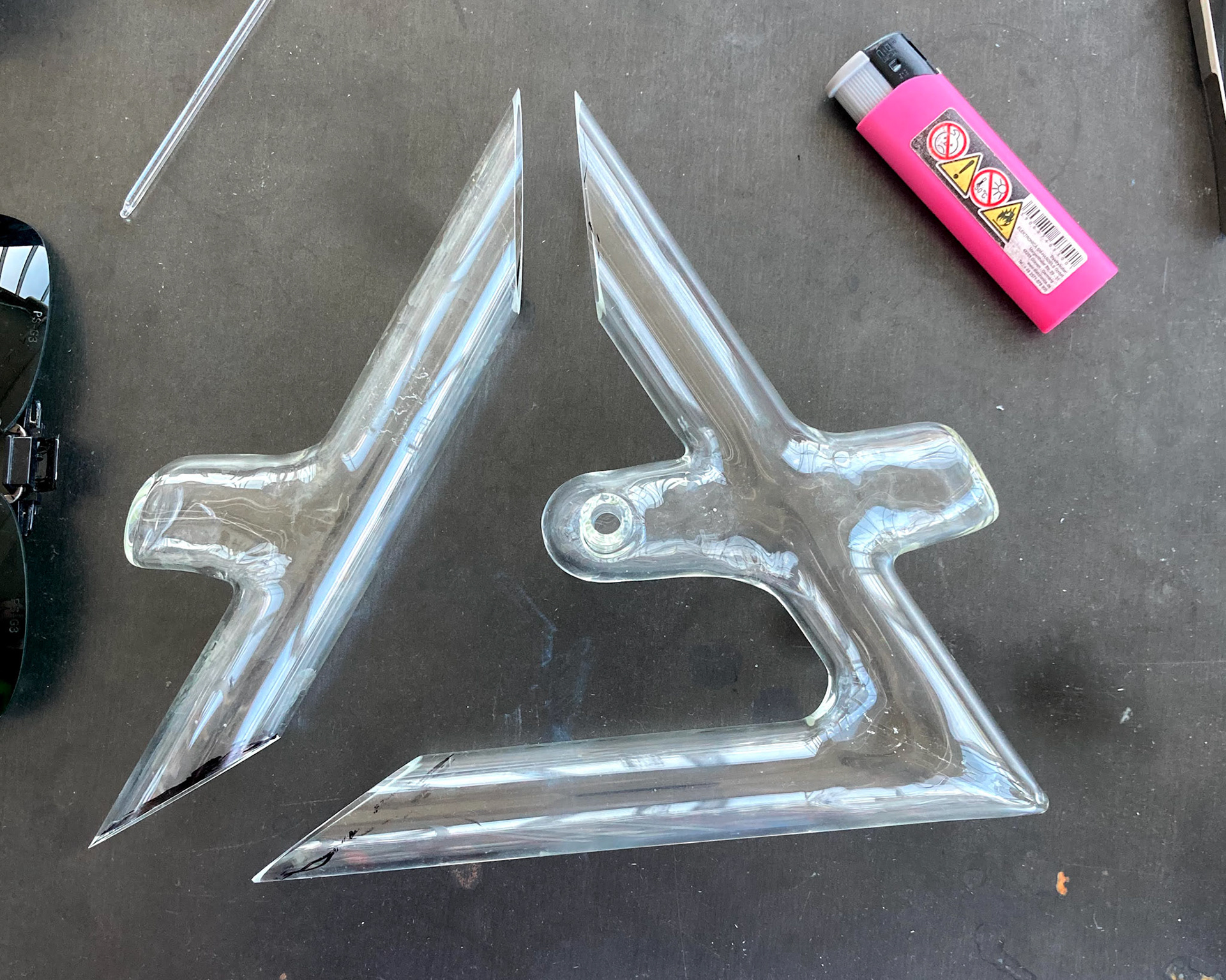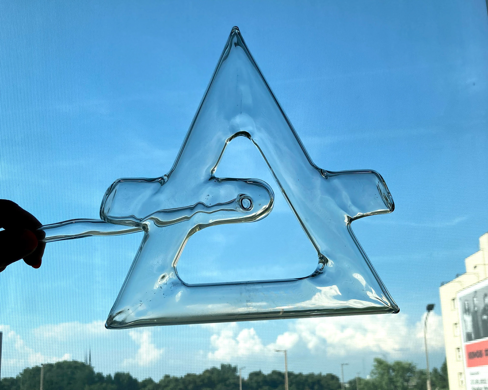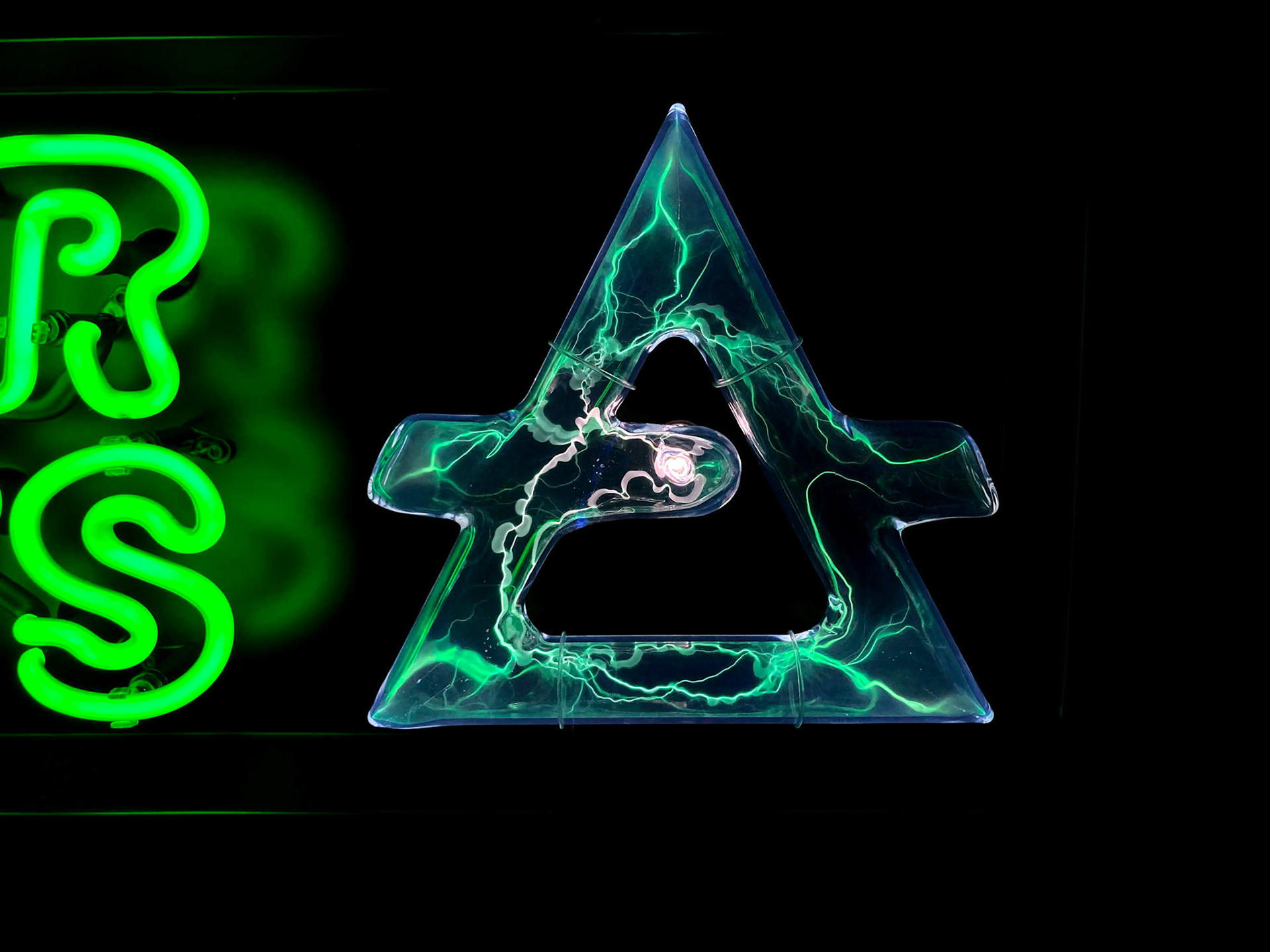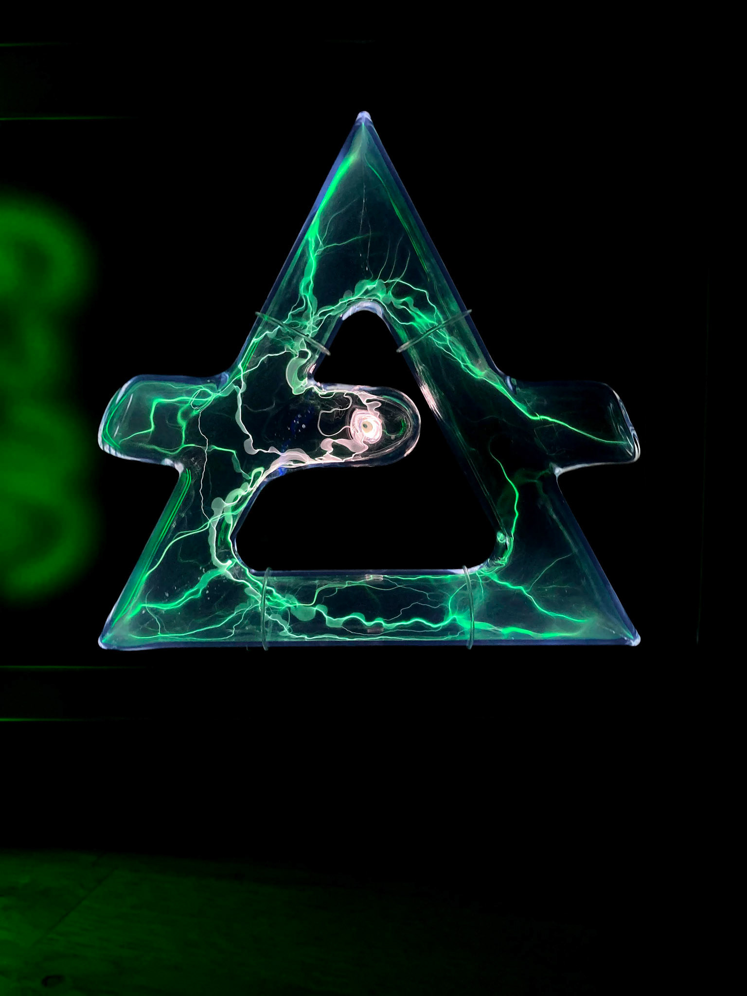 Jednoelektrodowa rzeźba plazmowa, szkło borokrzemowe formowane w płomieniu palnika, neon | Single electrode plasma sculpture, flameworked borosilicate glass, neon | 2021