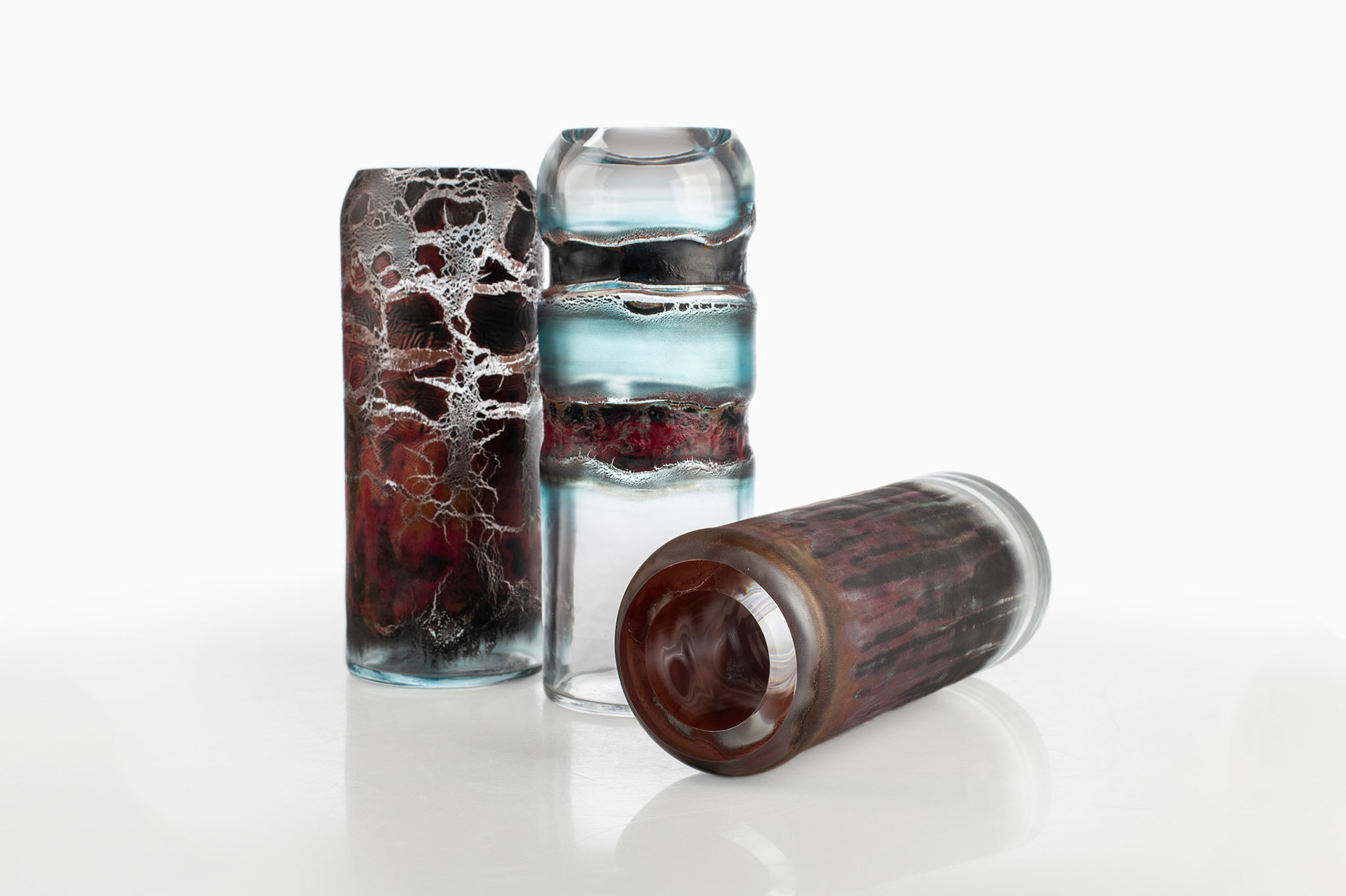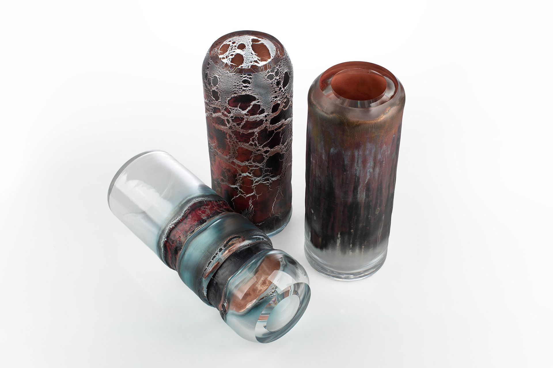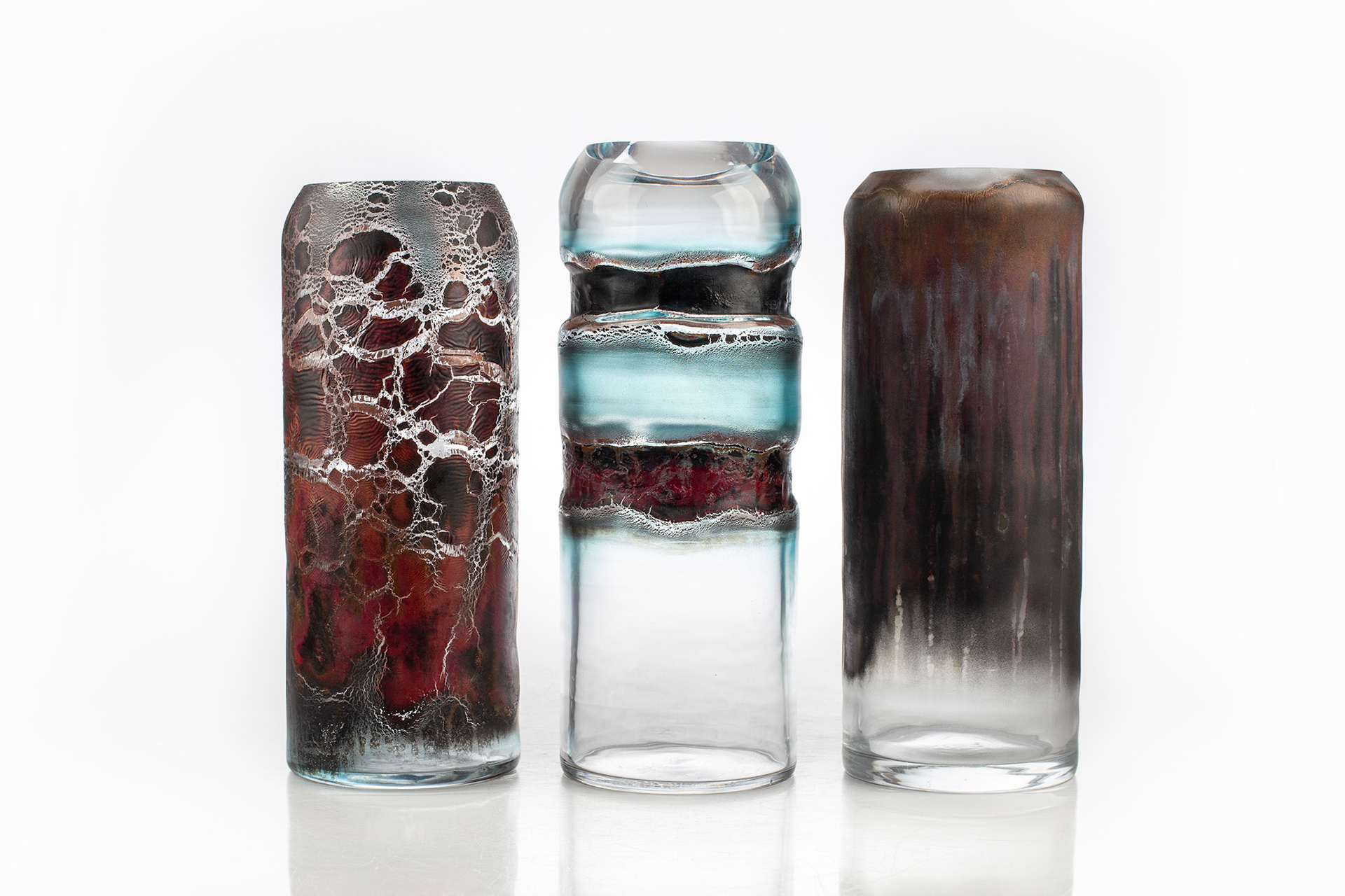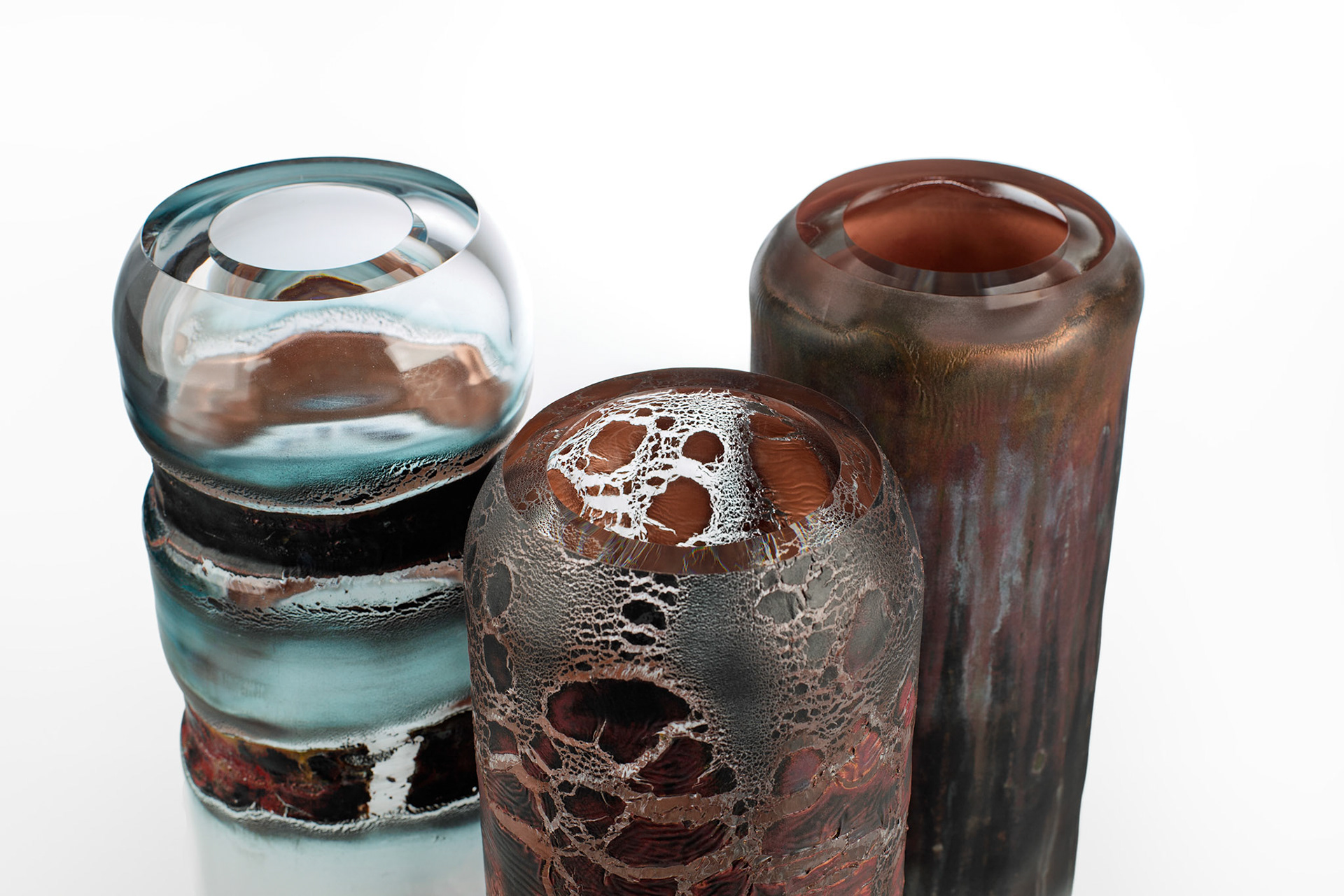 The Materia Prima series marks a new chapter in my creative work with glass. It explores the possibilities of combining blown glass with liquid metals.